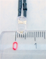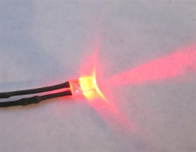 Bright red LED (3mm dia) pre-wired with resistor and 20cm leads