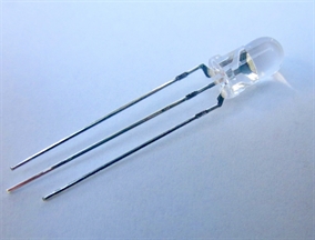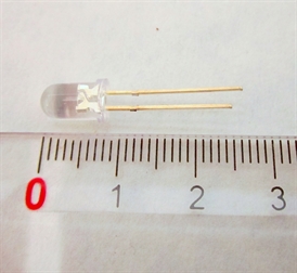 This LED gives a bluish white light and can be used with the RCT-Rx102 directional lighting outputs (Pins 6 and 7). No resistors are needed when used with the RCT-Rx102 as these are built into the receiver. If you want to use this LED with the RCT-Rx65b, then you will need to include a resistor to limit the current to the LED (see below)
