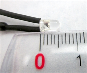 Bright white LED (3mm dia) pre-wired with resistor and 20cm leads