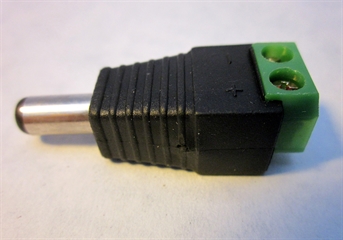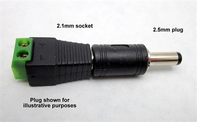 Standard 2.1mm plug for connection to 2.1mm charging socket. Screw connectors allow for easy connection to the output from a battery charger