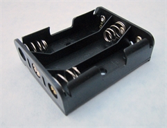 Battery box for holding three AA batteries side-by-side. L x W x H = 60mm x 48mm x 17mm. (4.5v alkaline or 3.6v NiMh). With PP3 type battery button connections, which enables you to remove or change the battery box with the minimum of effort. You will need a PP3 connector (see above)