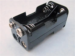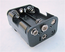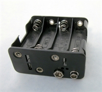 Battery box for holding four AA batteries in two layers of two, side by side. L x W x H = 60mm x 28mm x 28mm. (6v alkaline or 4.8v NiMh). With PP3 type battery button connections, which enables you to remove or change the battery box with the minimum of effort. You will need a PP3 connector (see above)