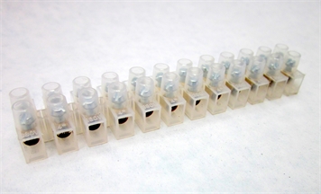 12 way polyethylene terminal strip (BS1590). L x W x H = 93mm x 17mm x 14mm. Max cable size 4mm2 . Can be split into smaller combination or individual blocks.