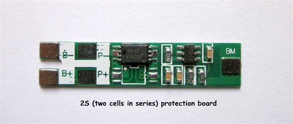 These circuit boards help to protect rechargeable lithium batteries from over-charging, over-discharging, excess current drain and short circuit. When making battery packs for locos with two or three lithium cells in series (2S or 3S), it is essential that they are protected from adverse conditions. Please do not make up your own packs of lithium batteries unless you are confident about what you are doing. See more ........