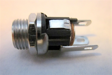 Standard DC socket for connecting batteries to the charger. 7.5mm mounting hole, 2.1mm female connector. Includes isolation switch (if needed).