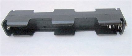 Battery box for holding four AA batteries in two rows of two. L x W x H = 112mm x 24mm x 17mm. (6v alkaline or 4.8v NiMh). With PP3 type battery button connections, which enables you to remove or change the battery box with the minimum of effort. You will need a PP3 connector (see above)