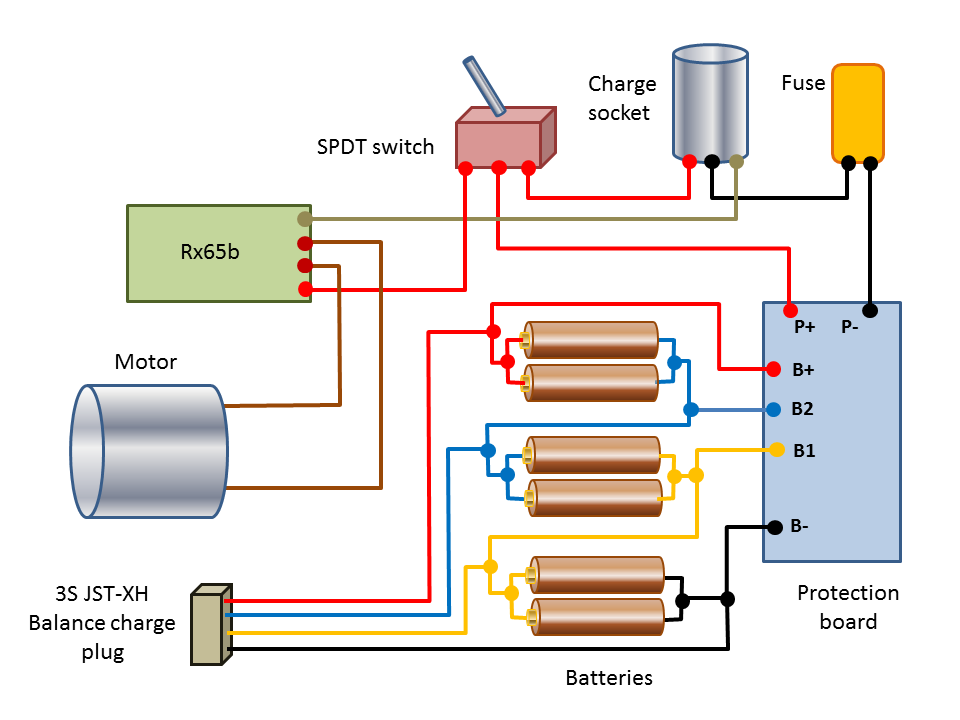 NOTE: The fuse is not really necessary as the protection board protects against short circuits